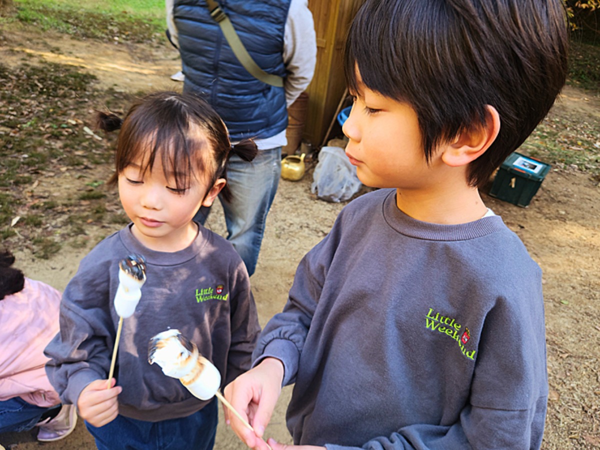 ちびはというと、ウインナーをほおばったあと「次はマシュマロ♪」と両方リクエスト♪