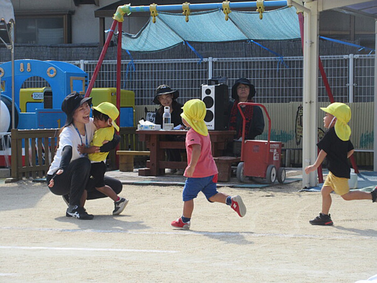 年少さんや年中さん、そして未満児クラスの子どもたちも、にこにこ笑顔でかけっこやダンスに挑戦!