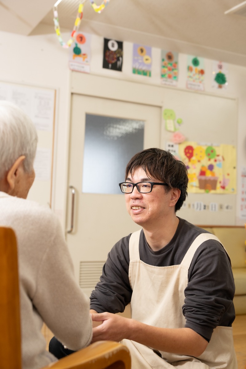 手が届く距離で支え合える温かさと、医療面のサポート体制が揃った職場で、「階段を上がるようなキャリアより、変わらずそこにいる存在でありたい」と二宮さんは目標を語る。