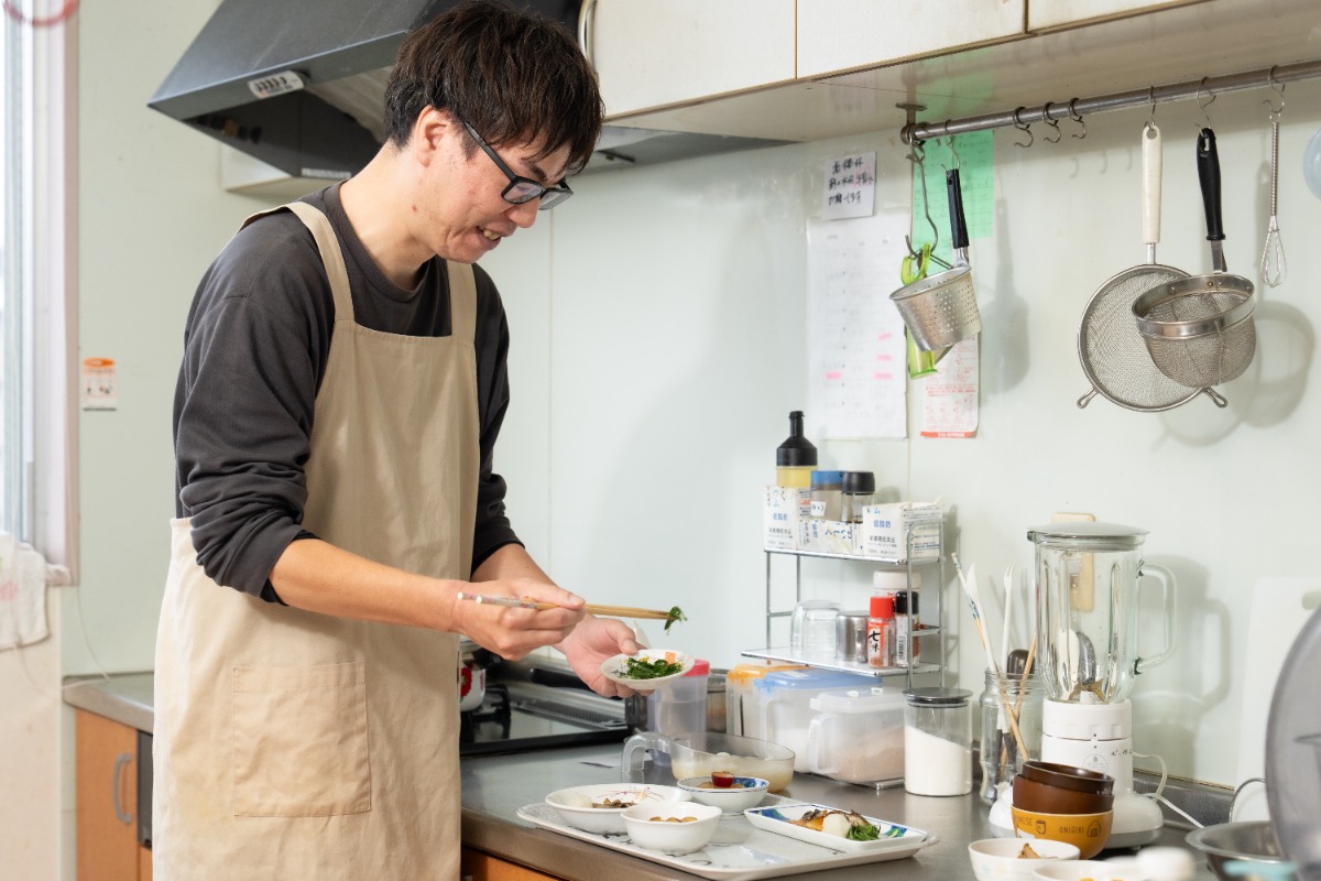 入居者が自宅の延長のように過ごせる“家庭的な雰囲気”を大切にしている「はなの家」。二宮さんは、生活支援だけでなく調理にも関わっており、家庭料理を囲む時間を通じて入居者の笑顔を引き出している。