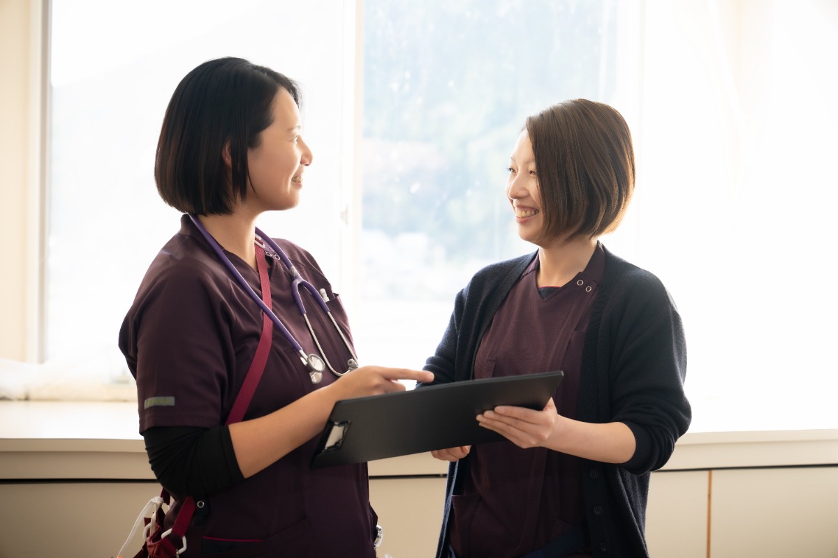 食べたい“”歩きたい”など一人ひとりの希望に耳を傾ける姿勢を大切にしているという。こうした日々のケアを支えているのが、職種の垣根が低く、すぐ相談できる体制だ。子どもの体調不良による急な呼び出しにも、勤務調整や声かけでフォローしてもらえる職場の風土が、大きな安心に。