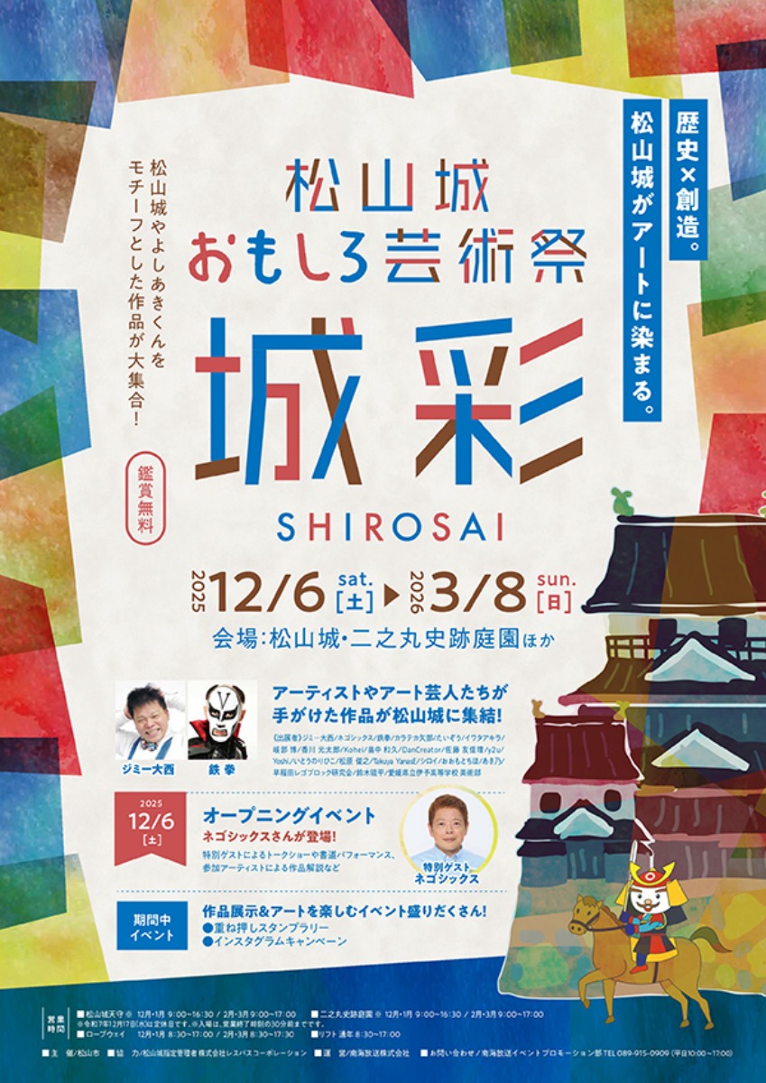2025年12月6日から2026年3月8日まで開催される「松山城おもしろ芸術祭~城彩~」は、松山城と二之丸史跡庭園ほかを舞台に、個性豊かなアーティスト23名の作品が展示される特別な芸術祭です。