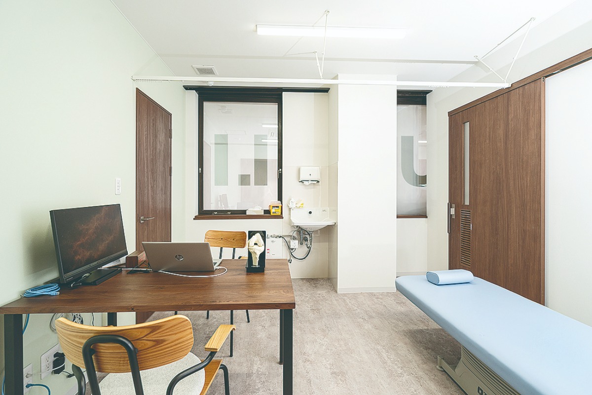 来院前にウェブで問診票を入力し、当日は症状や治療歴、痛みの出方などを詳しくヒアリング。一人ひとりの背景や目標に合わせた治療判断のため、初診時から丁寧な聞き取りと説明が行われる。