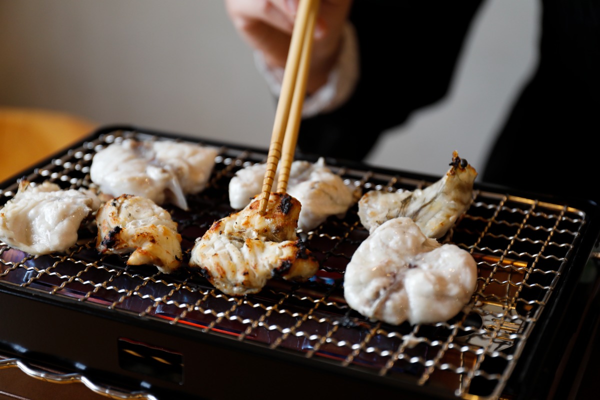 「ふぐ尽くしコース」のメインをふぐ鍋から「焼きふぐ」に変更してもOK! もちろん単品注文も◎