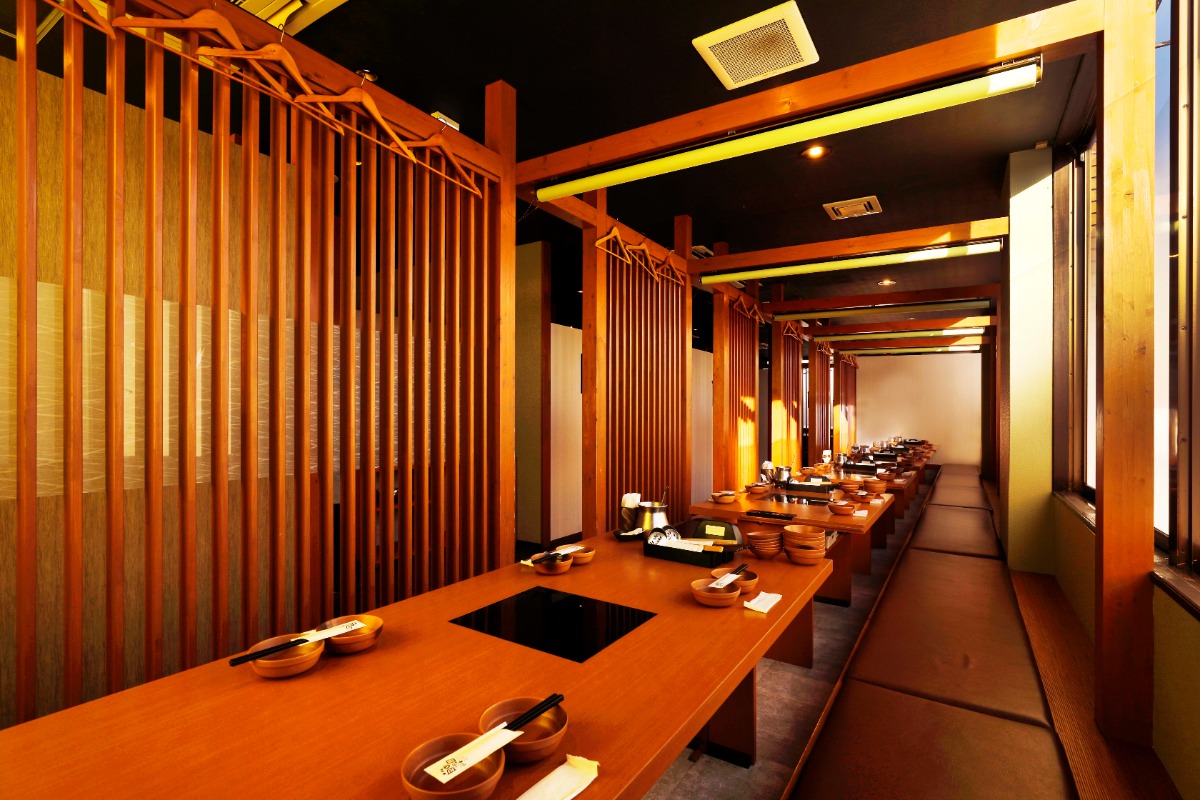 仕切りなしの掘りごたつ席は最大40名までOK!周囲を気にせずくつろげる、居心地の良さが特徴です。