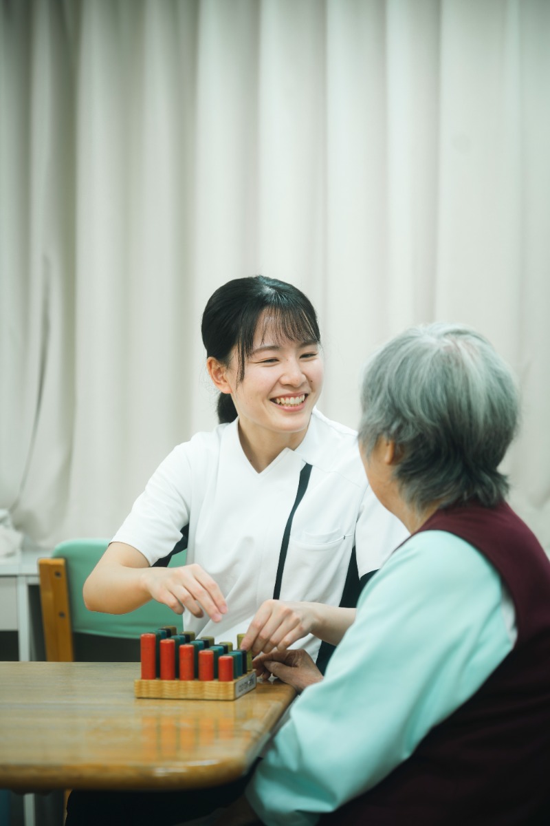 同院で働く作業療法士の年齢層は幅広い。困ったときに気軽に声をかけられる雰囲気があり、経験の浅さを気負わず挑戦しやすい職場環境が魅力だ。患者の表情や小さな変化を共有し合いながら、チームで働く日々にやりがいを感じている。