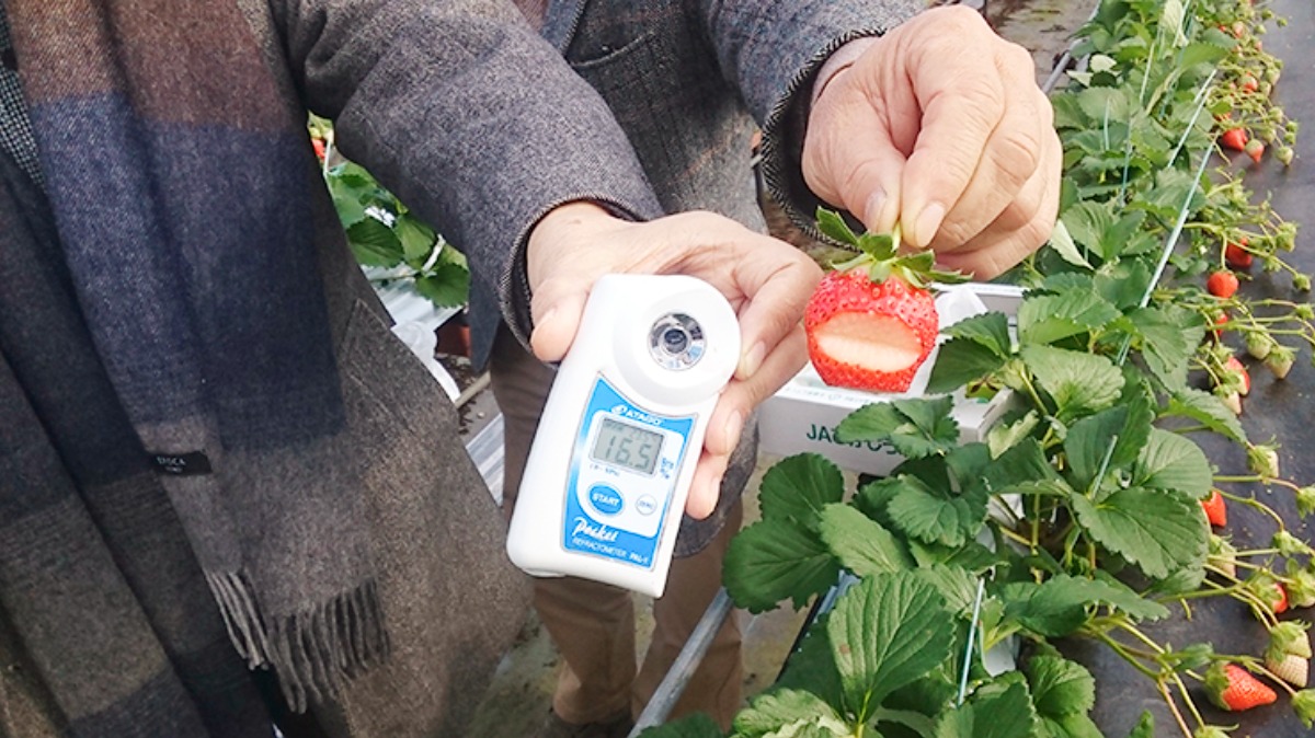 「寒紅いちご」「ひめ寒紅いちご」は、甘さを濃縮する栽培管理と、冬の寒さを利用した「寒じめ」と呼ばれる手法を組み合わせて栽培されるイチゴで、通常の倍の期間をかけて熟成させるという、手間も時間もかけた極上のいちごです。