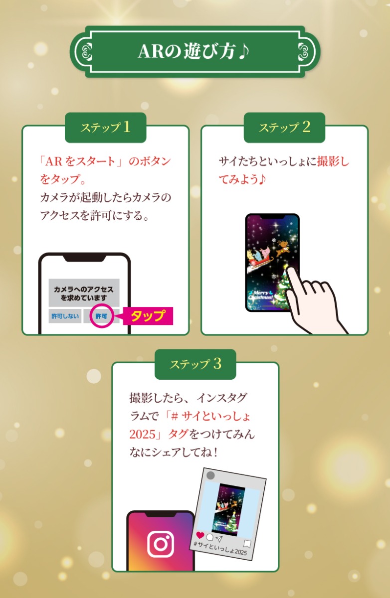 クリスマスARフォトフレームでサイたちと一緒に撮影して楽しんでくだサイ♪