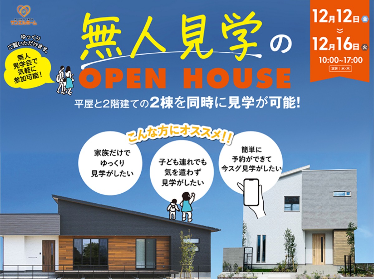 12/6~12は予約制、12/13・14の二日間は予約不要!長期優良住宅を見学てみよう!