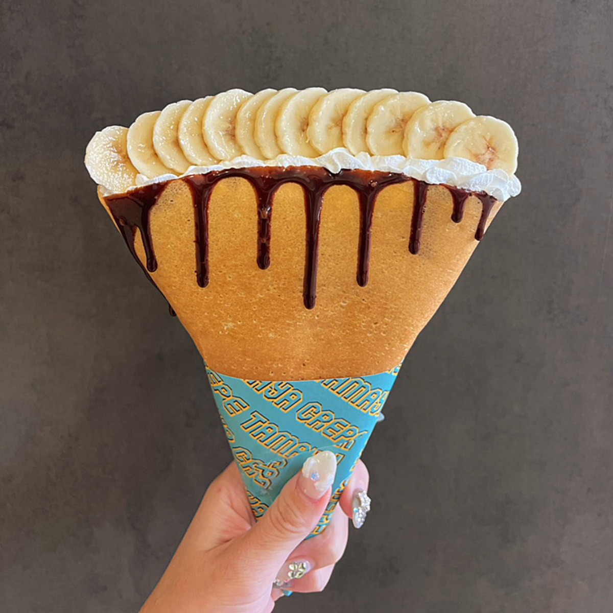お客様の声から誕生したクレープで、香ばしく焼き上げたパリパリ生地に、バナナとチョコの鉄板コンビを合わせた一品です。