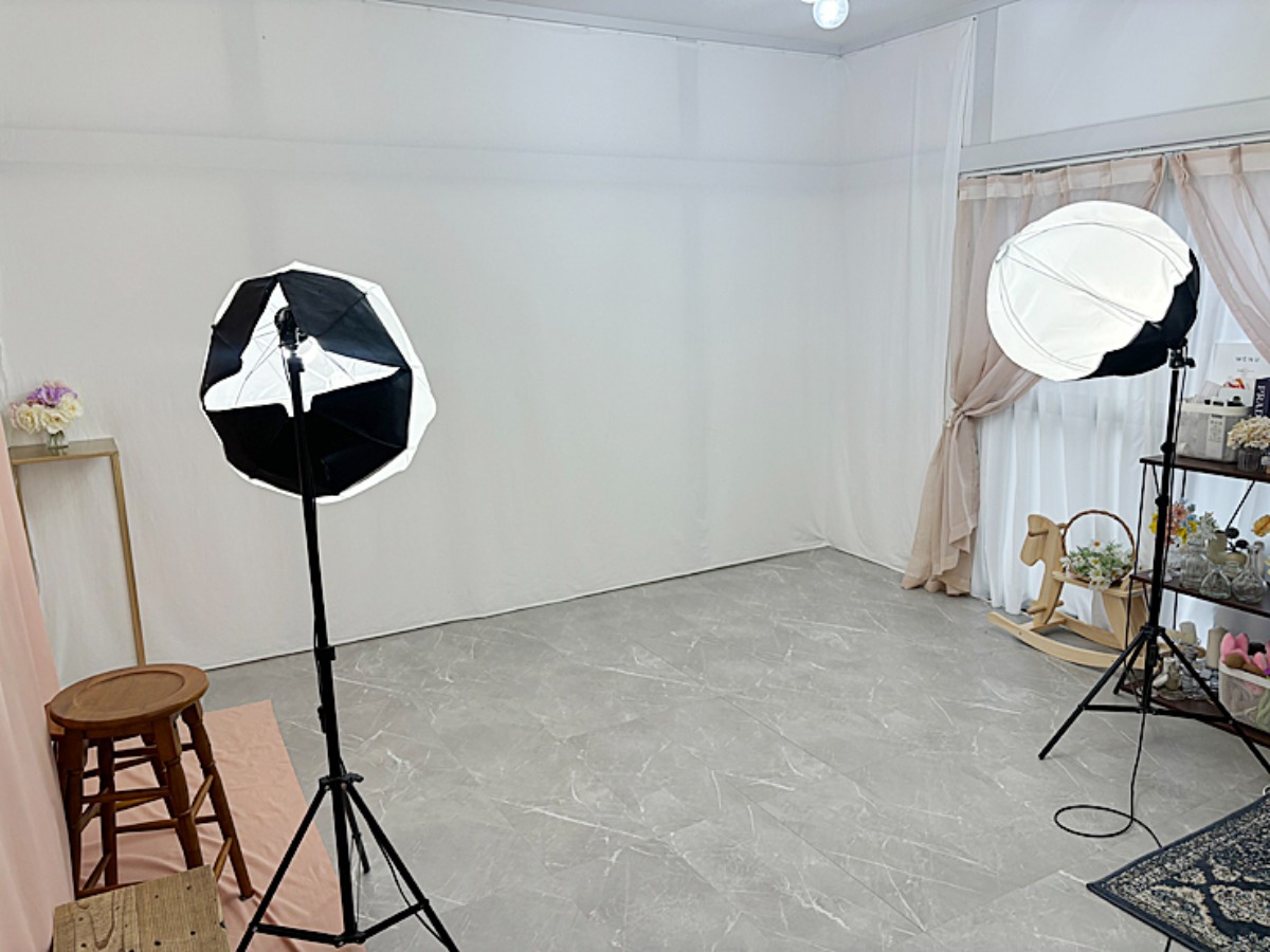1階にはセルフフォトスタジオ、2階にはレンタルスペースがあるので、バースデーフォトやマタニティフォト、“推し活”など、撮影したい内容に応じて趣向の違う部屋を選べます。