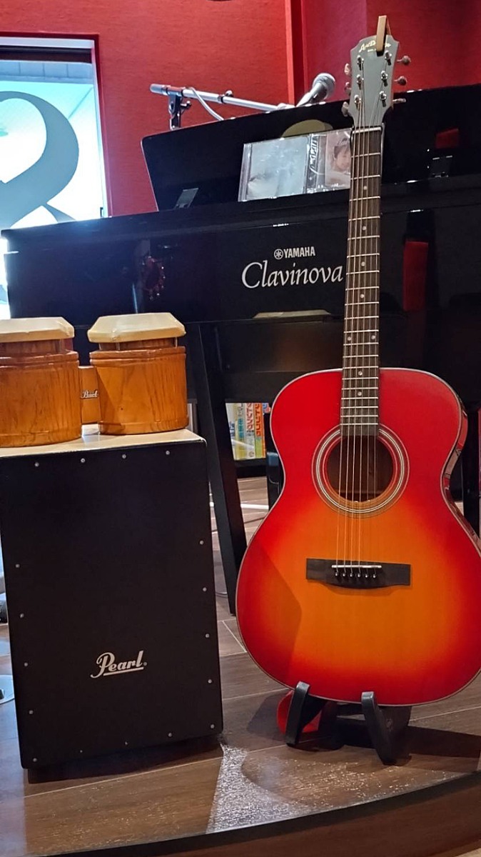 アコースティックギターとカフォン(パーカッション)も置いてあり、自由に演奏もできますよ♪