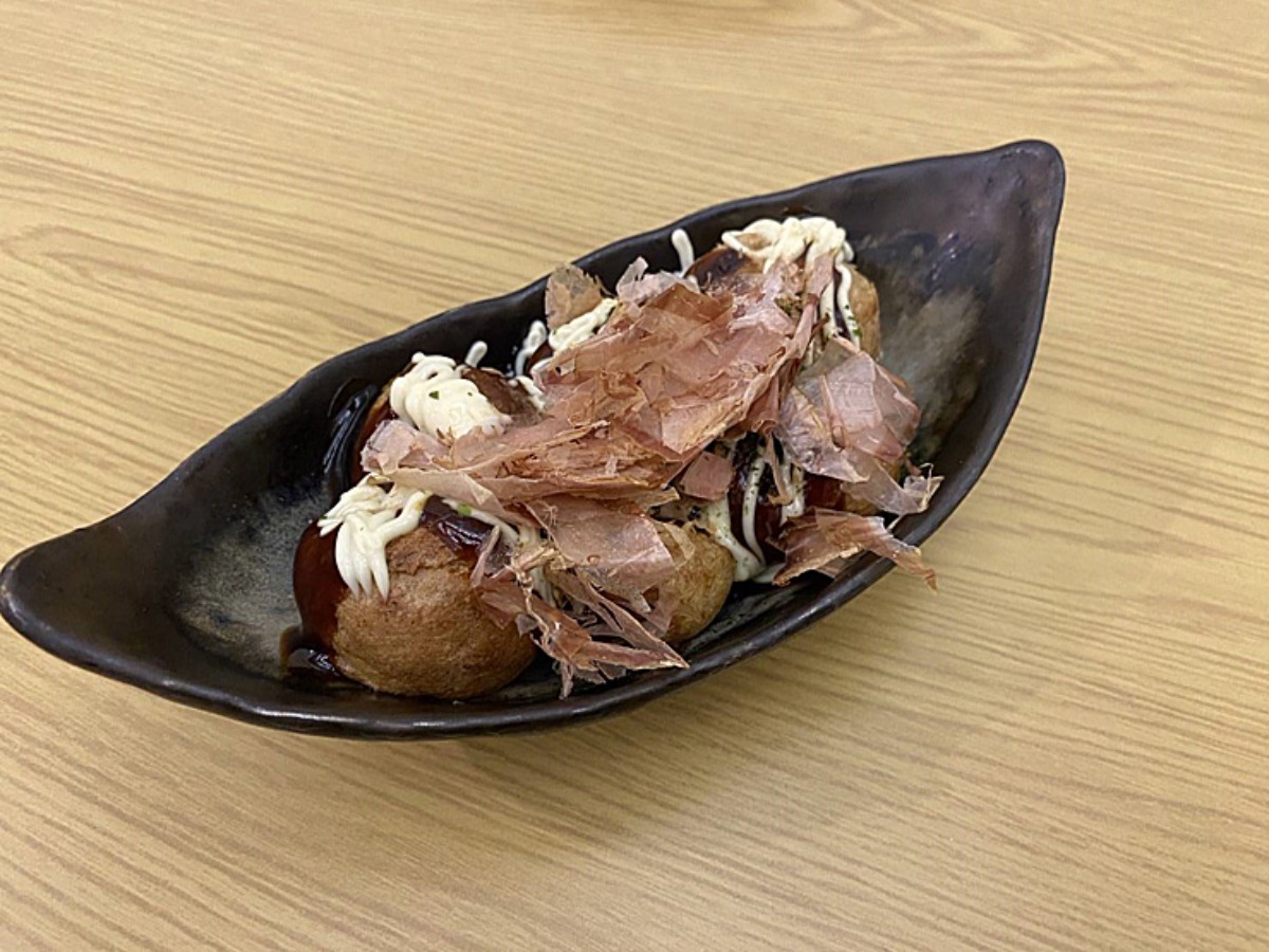カリッと香ばしい外側と、中がとろ〜りやわらかな絶妙食感が楽しめる本格たこ焼きがサイドメニューとして提供されています。