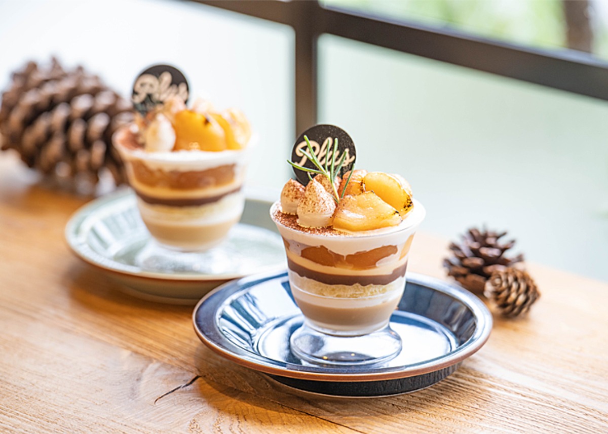 自家製コンポートがのった「りんごのキャラメルパフェ」は毎年この季節のお楽しみ