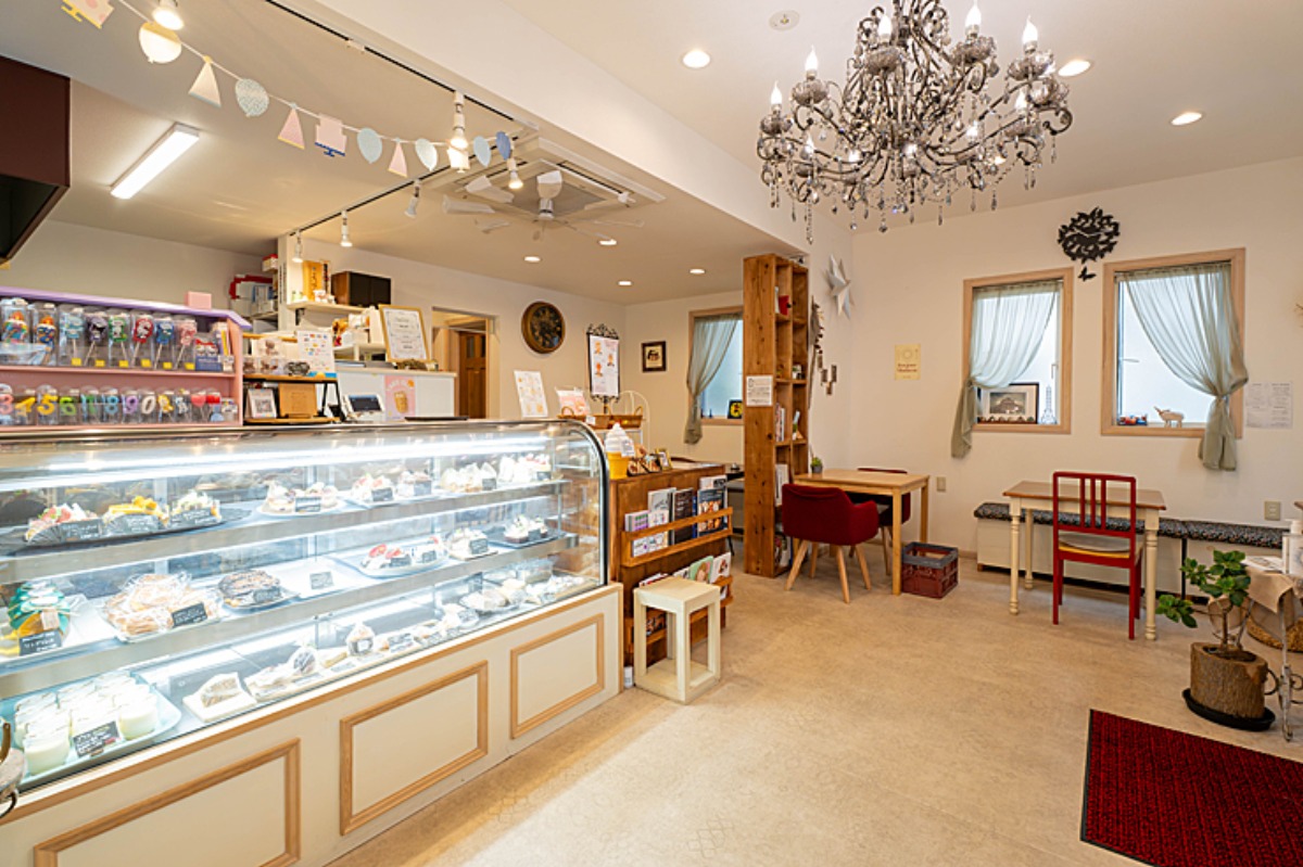 その横にはカフェスペースも併設されているので、こだわりのケーキやドリンクを楽しみながら至福のひとときを。