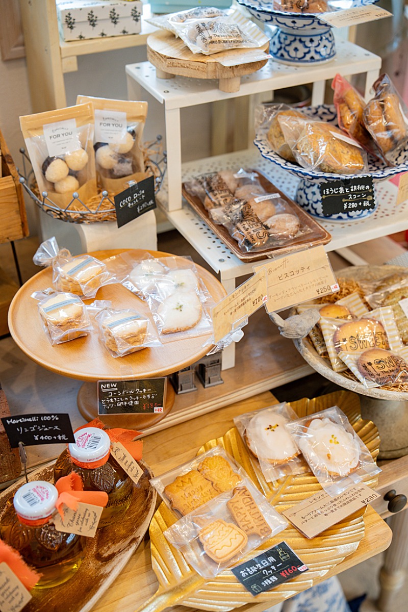 一つひとつラッピングされたおしゃれな焼き菓子。クッキーを中心に約50種類ほど揃う