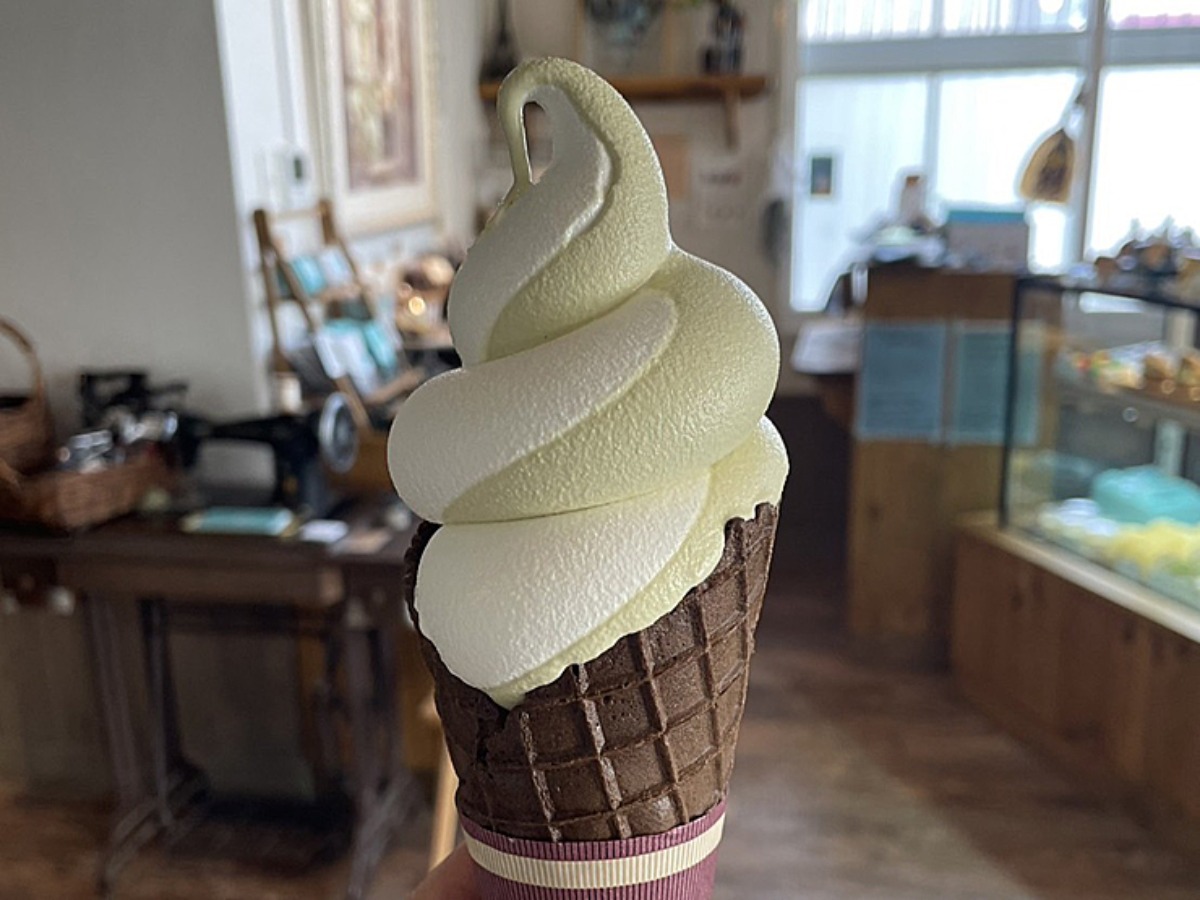 テイクアウトはもちろん、カフェスペースでゆったり楽しめ、ソフトクリームだけの購入も可能。