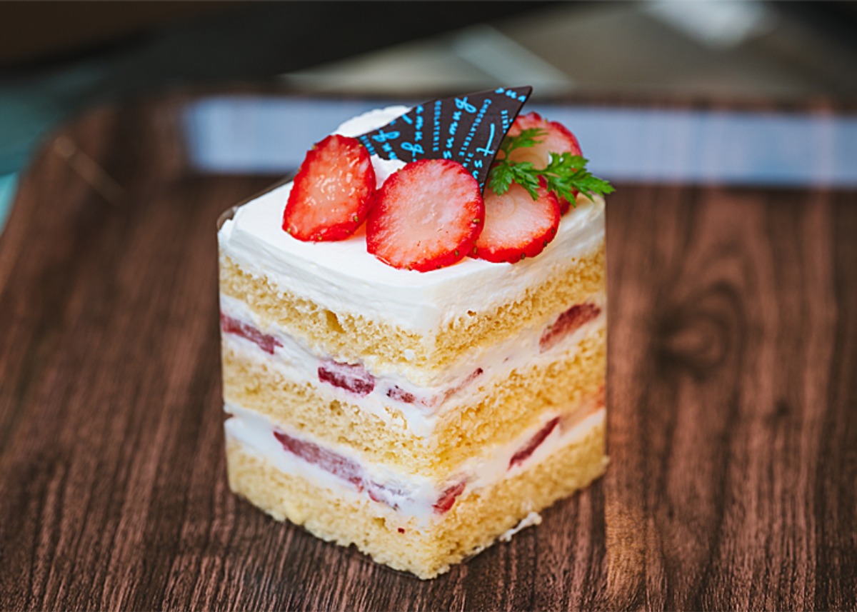 2種をブレンドした生クリームはさっぱりとした軽めの口当たり。国産イチゴを使用した定番ケーキ