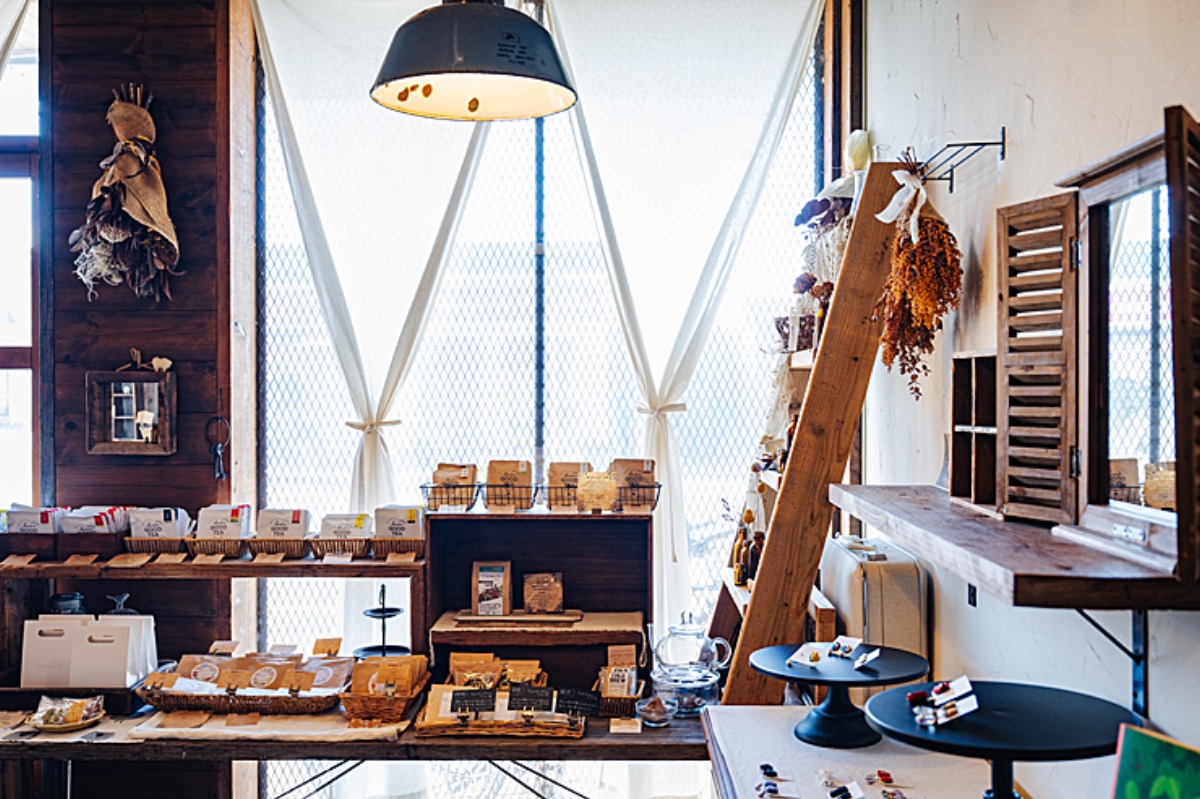 光が差し込む「いととひと」店内には、店主が好きな羊モチーフの雑貨も