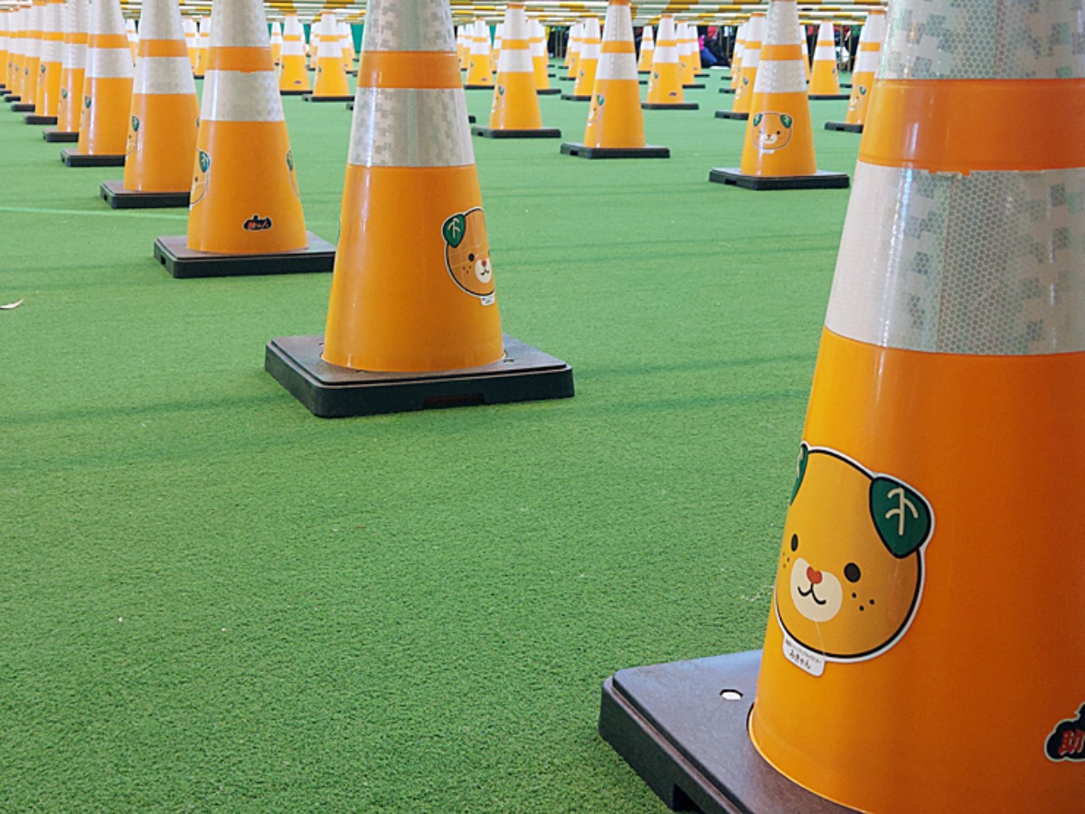スタジアムの周囲には、愛媛のキャラクターみきゃんが描かれたコーンが並び、コースを彩っていました。