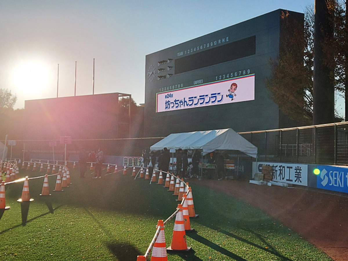 しかし会場のマドンナスタジアムに着くと、東の空から朝日が差し込み始め、スタンドやグラウンドが少しずつ明るさを増していきました。
