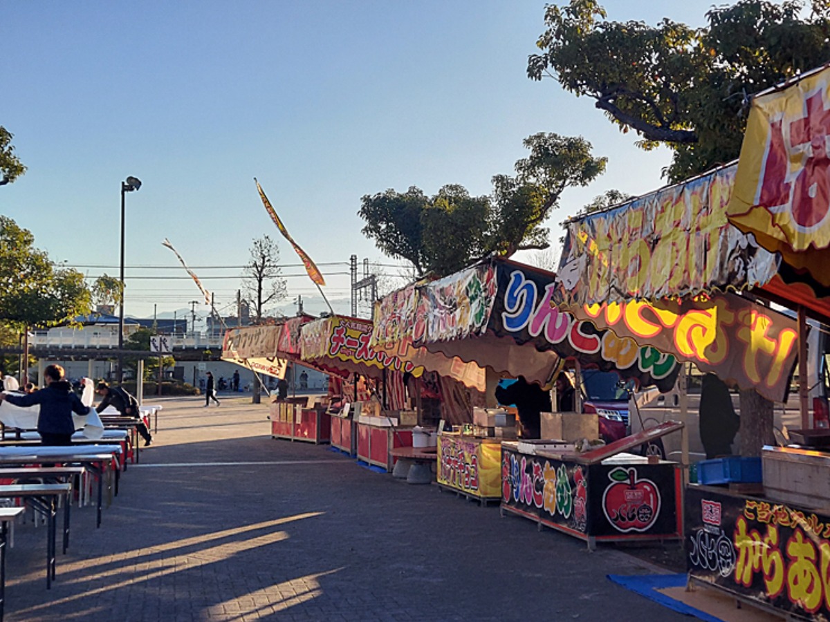出店のにぎわいがマラソン大会をさらに華やかに。