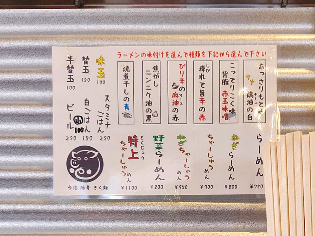 きく麺さんの自慢は、「今治豚骨ラーメン」。