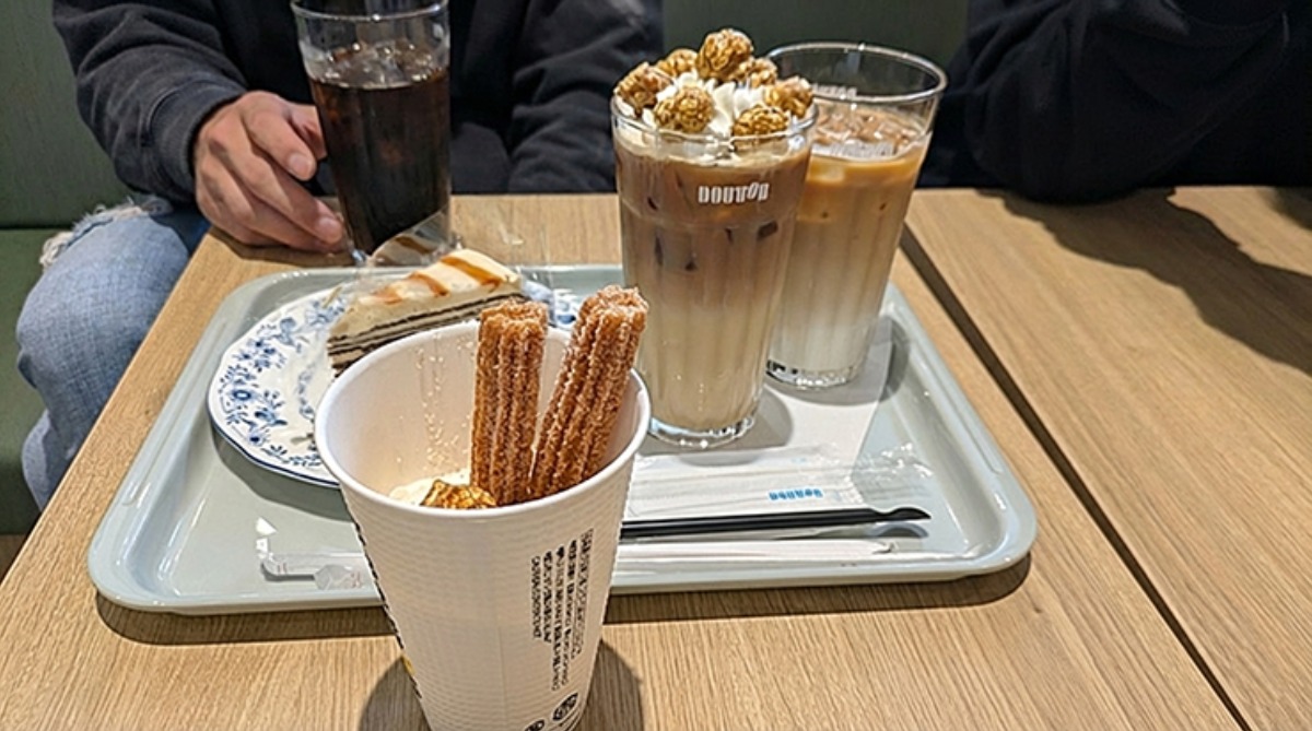 店舗限定の「チュロスサンデー/キャラメルポップ(590円)」カフェタイム最高!