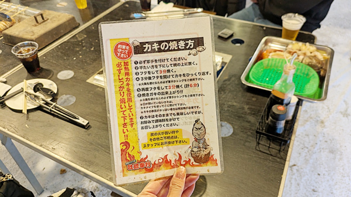 牡蠣の焼き方の説明も置いてあったので、安心ですね。