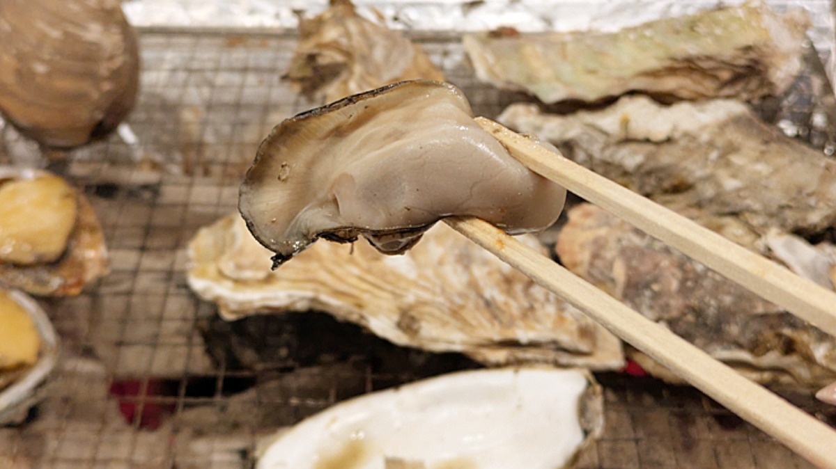 焼き台の上でジュージューと音を立てながら焼けていく牡蠣。