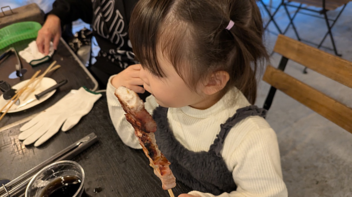 次女ちゃんもお肉をかぶりついて食べてましたよ。
