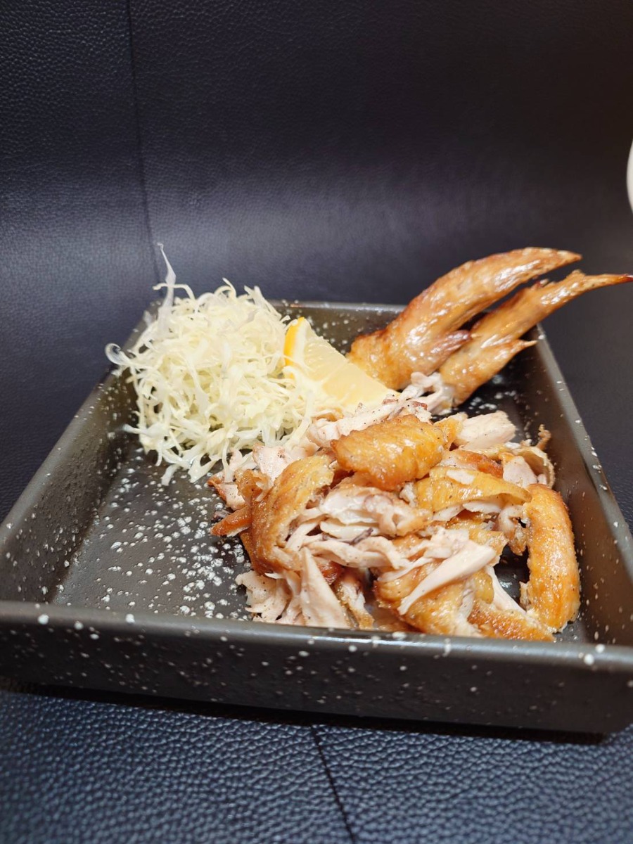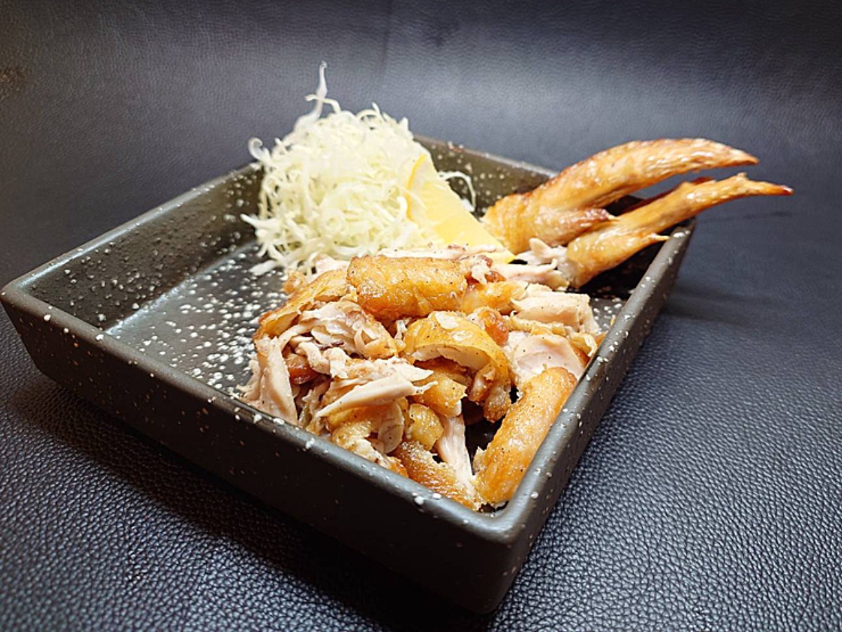 揚げたてのジューシーな手羽先を丁寧にほぐし、骨を完全に取り除いた状態で提供されます。