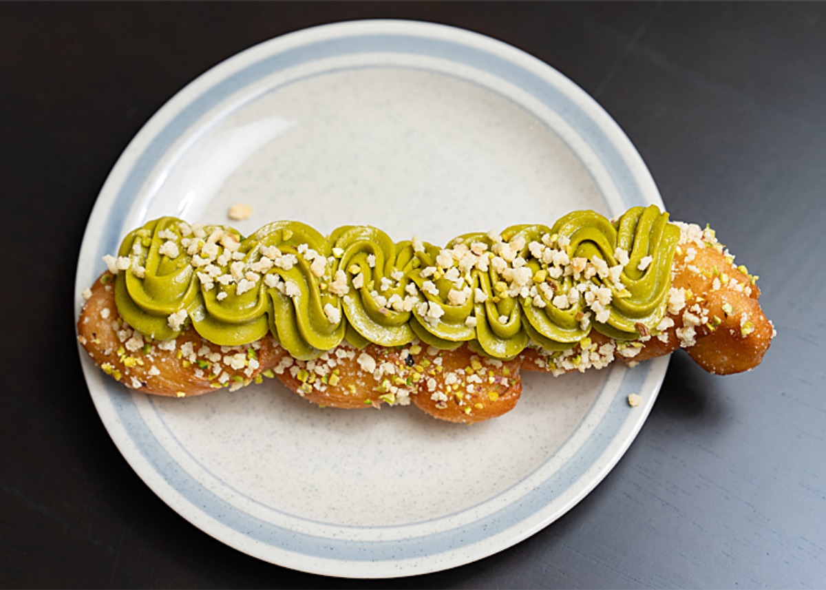 濃厚なピスタチオクリームがたっぷりのった、写真映え抜群の一品。ナッツの食感も楽しめる