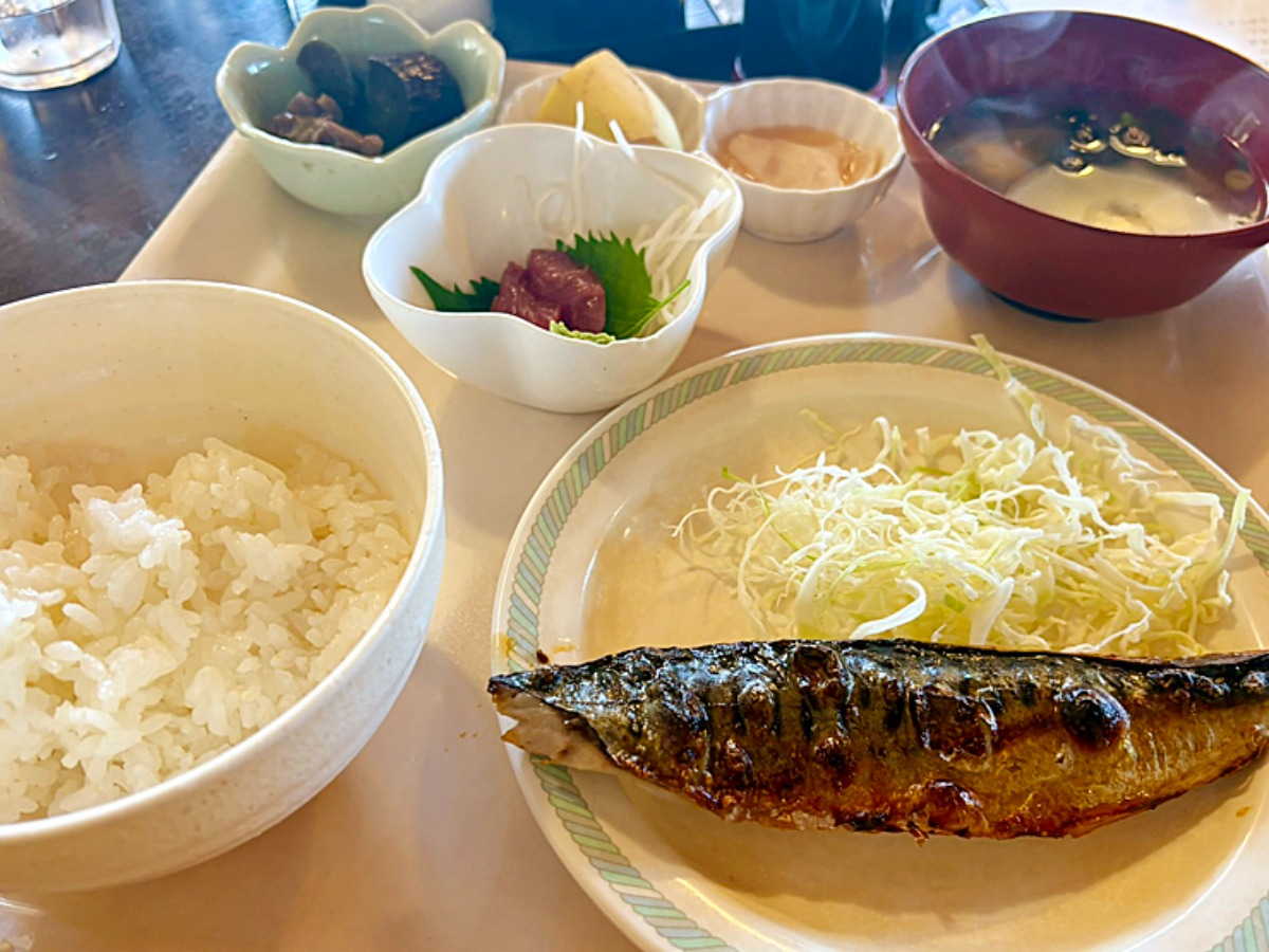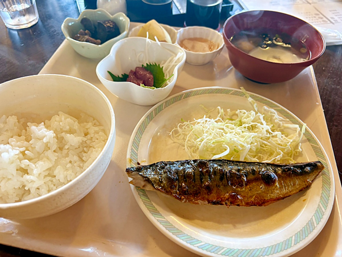 焼きたての塩サバは、皮はパリッと、身はふっくらでご飯が進みます。