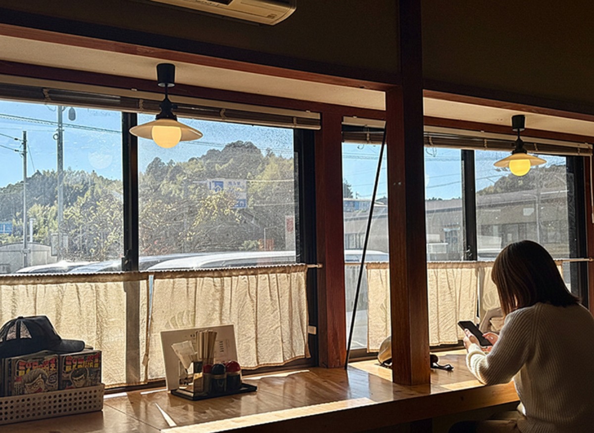 カウンター席からは外の景色も楽しめ、仕事の合間に立ち寄った様子のおひとり様客も多数みられました。