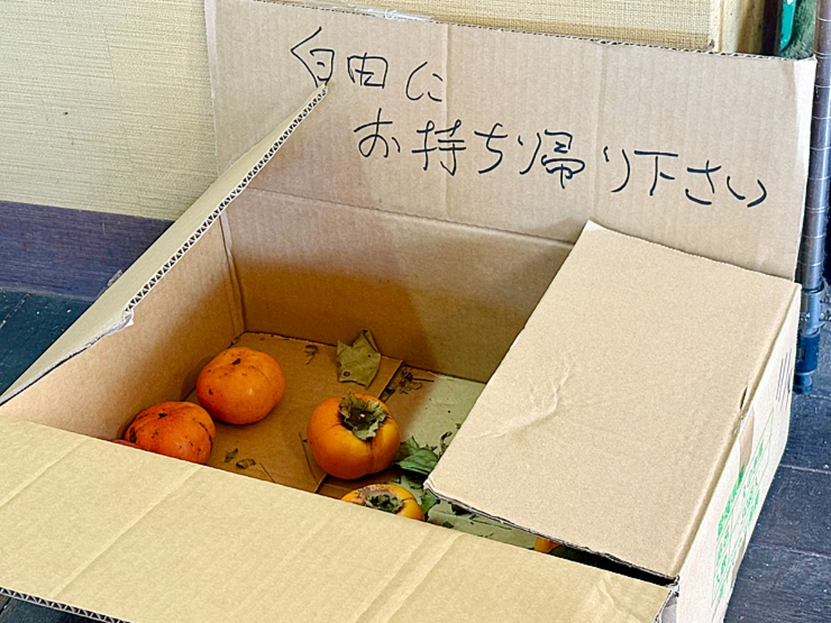 さらにレジ前では、敷地内で採れた柿を無料配布されていました。