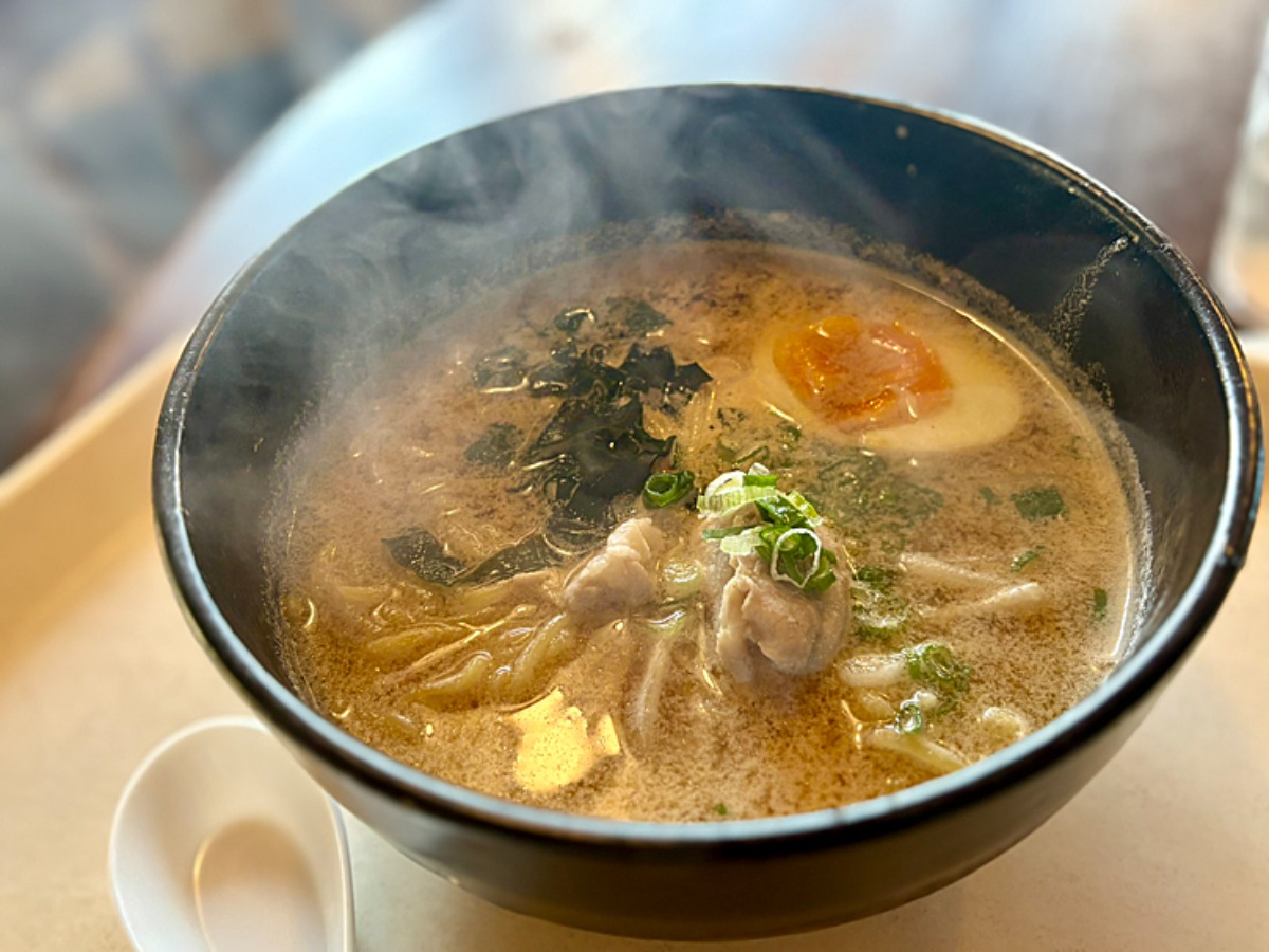 豚肉・野菜・ワカメ・煮卵など具だくさんで、中華麺とスープの絡みも抜群。