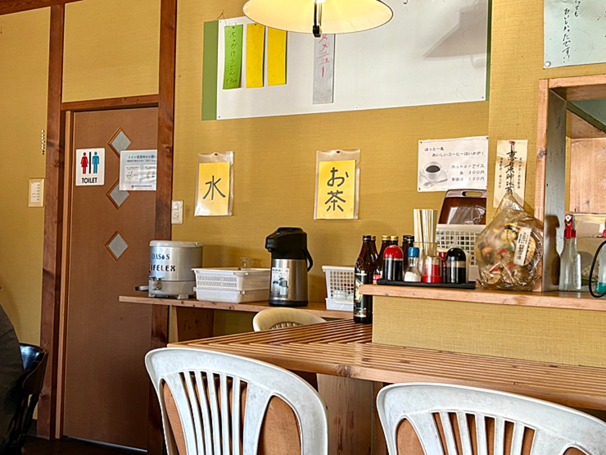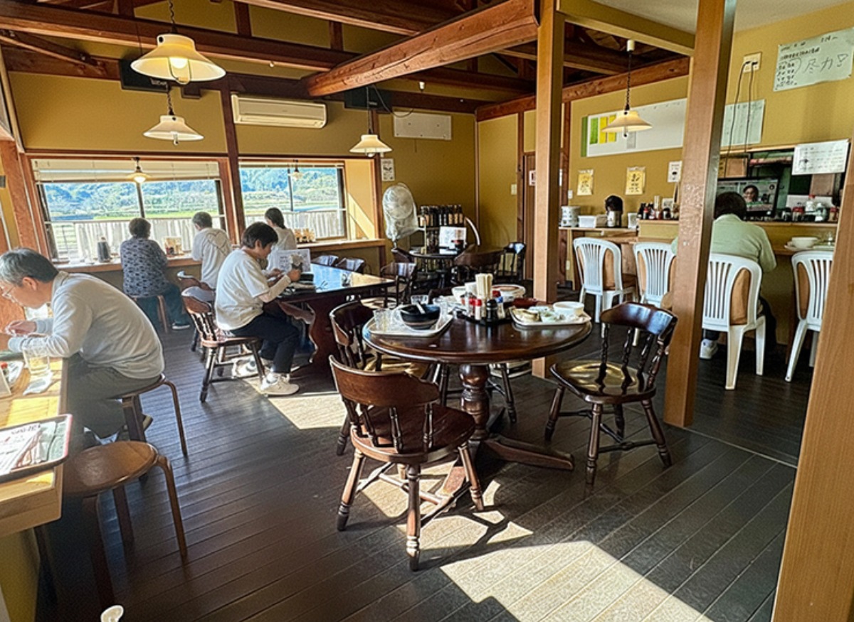 複数人が座れるテーブル席が3卓と、キッチン側と窓沿い側にカウンター席があります。