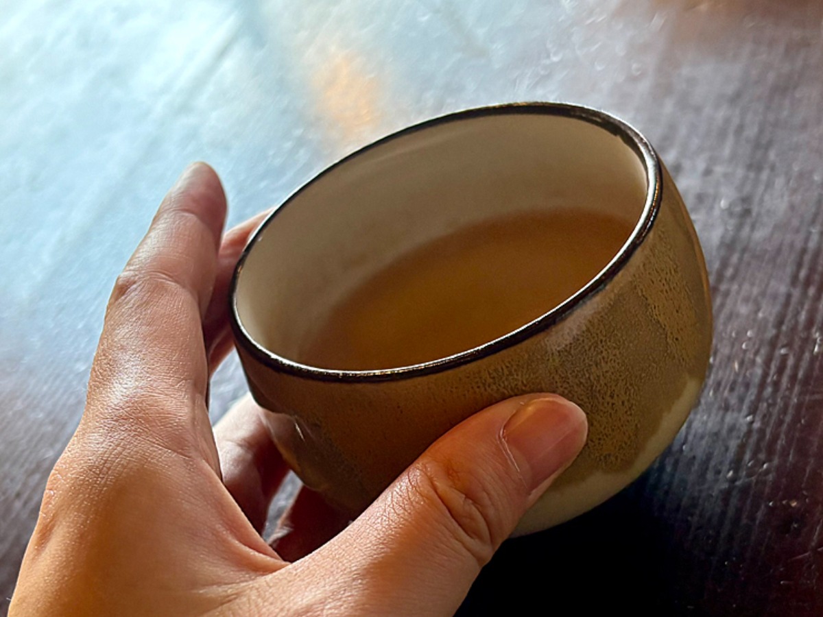食後には、セルフサービスの温かいお茶でほっと一息。