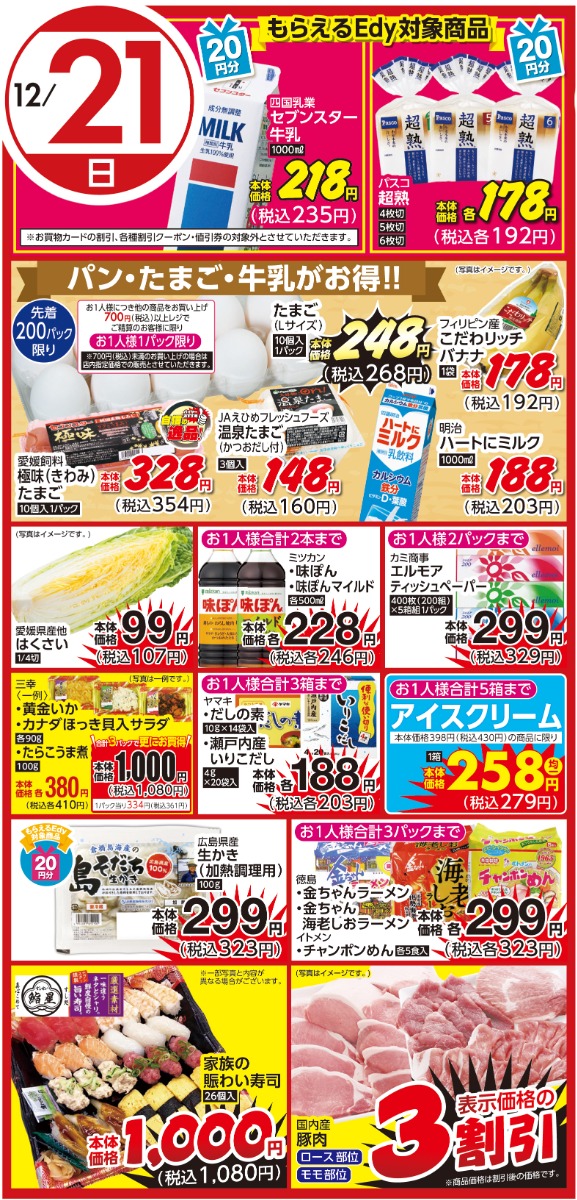 12/21(日)のお買い得情報