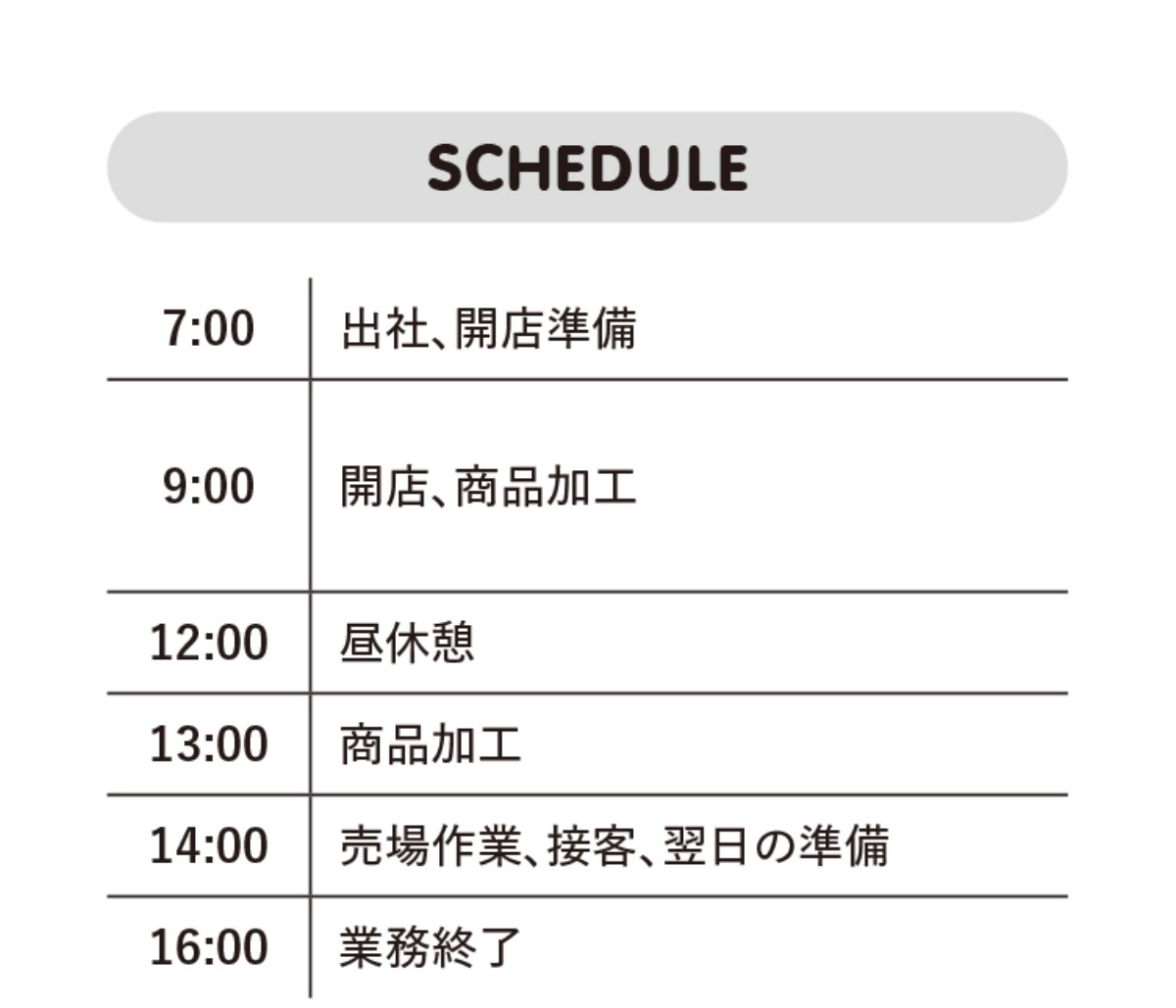 「パック詰めの際の見た目や、数グラムを調整しての価格設定など、お客様が“欲しくなる”商品作りは特に意識してますね」という言葉からも、お客様視点を大事にしていることが伝わってくる。その分、自分が作業を担当した商品が売れたときは喜びもひとしおだと笑顔で語る。
