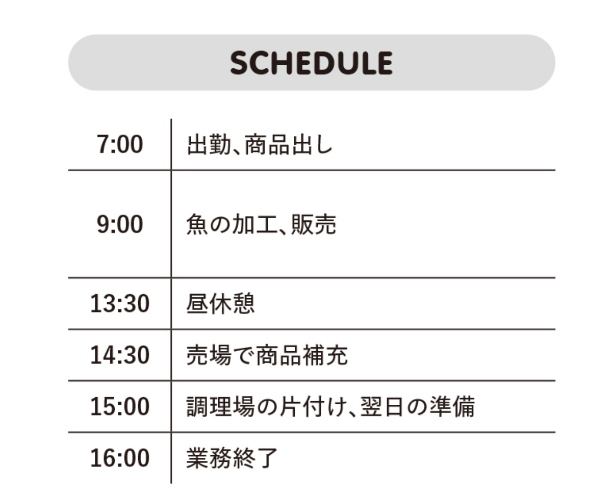 魚を捌く時間がやっぱり一番楽しいです。対面販売ではお客様から感謝の言葉も頂けますし、いい事尽くめですね。