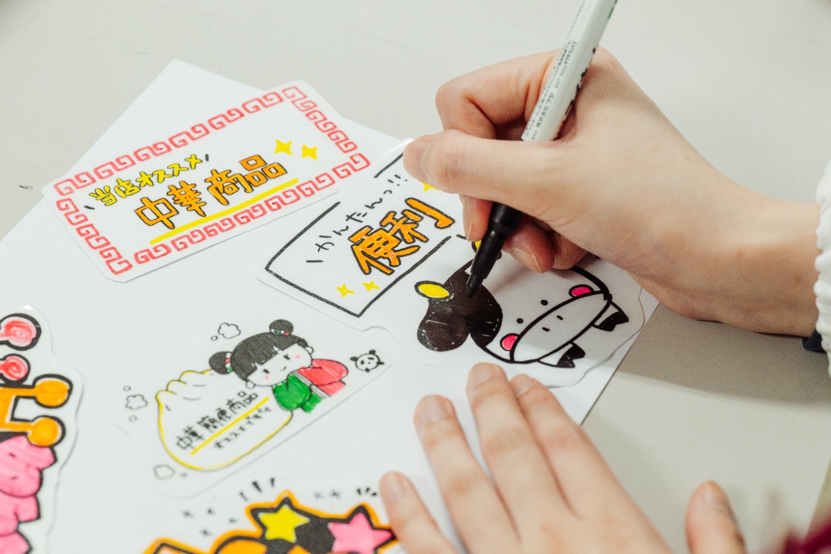 売場に置く手書きポップもこだわって作ります。わかりやすいキーワードを使って目に付きやすくするのがコツ!