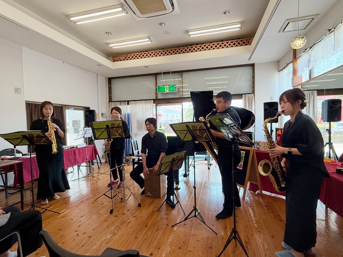 アンサンブルチームでサックスを演奏しており、月1回「さいさいきて屋」でゲリラ演奏も開催しています。