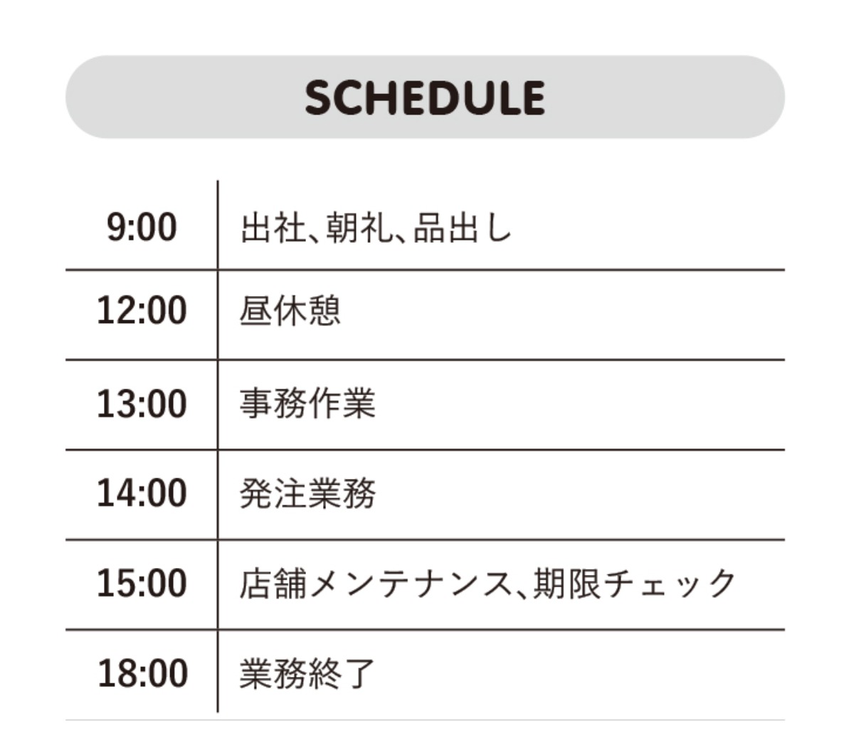 ●勤務時間/8:30~17:30、13:00~22:00(シフトは店舗によって異なる)