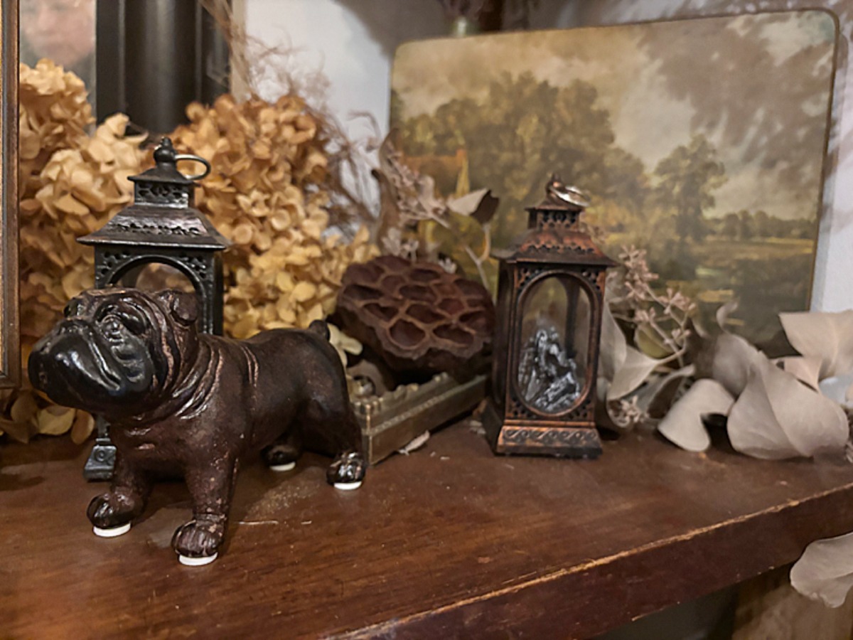 店内には、ブルドッグの置物や雑貨が多数飾られており、シンボルとなっています。