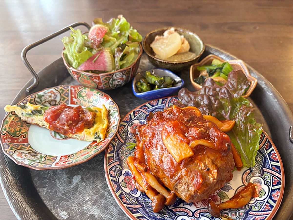 メインのチーズin煮込みハンバーグは、中のクリームチーズが特徴的で、しっかりと味が染み込んでいて、美味しかったです。