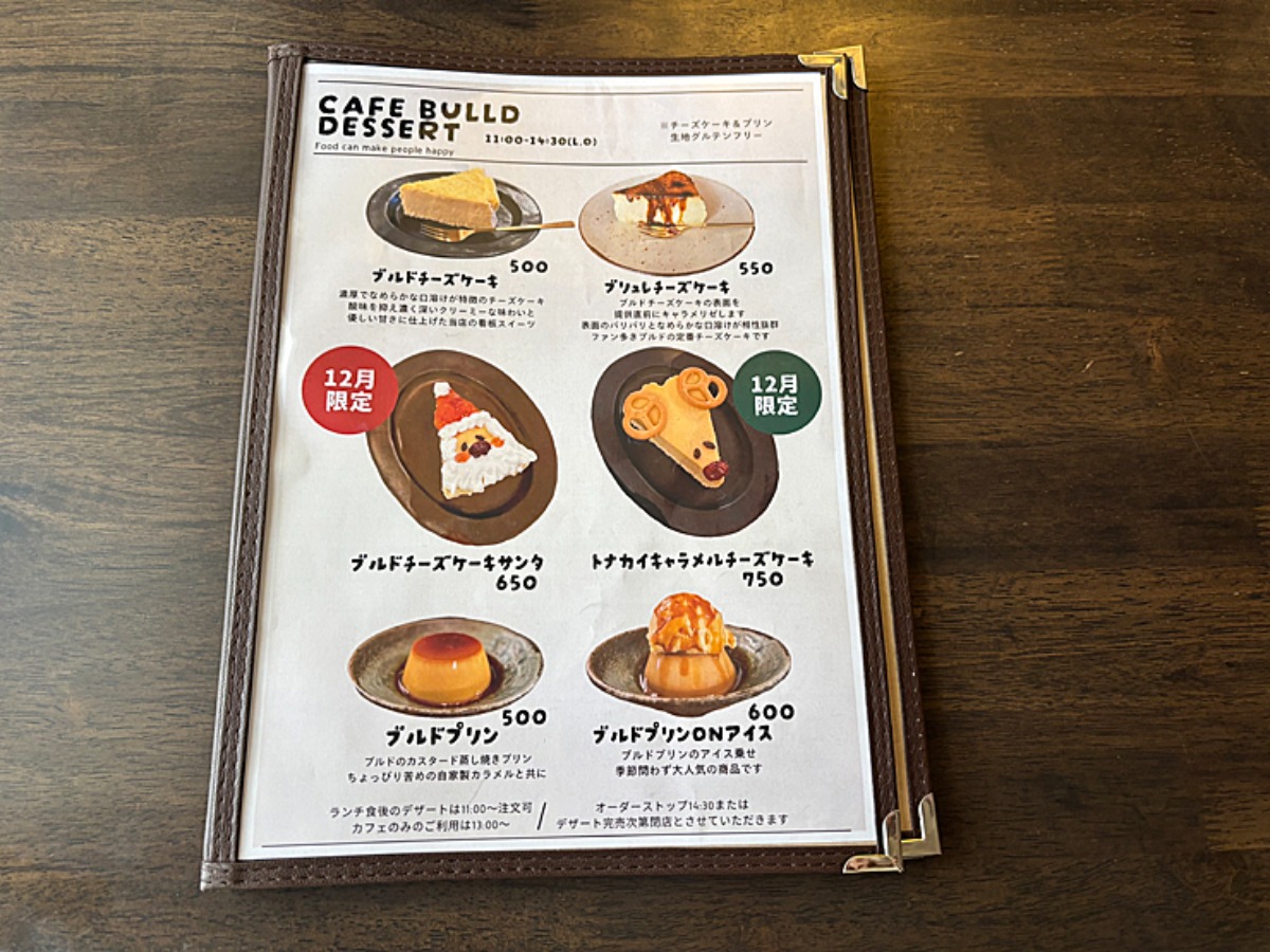 ブルドチーズケーキやブルドプリン、12月限定のチーズケーキなど6種類あります。