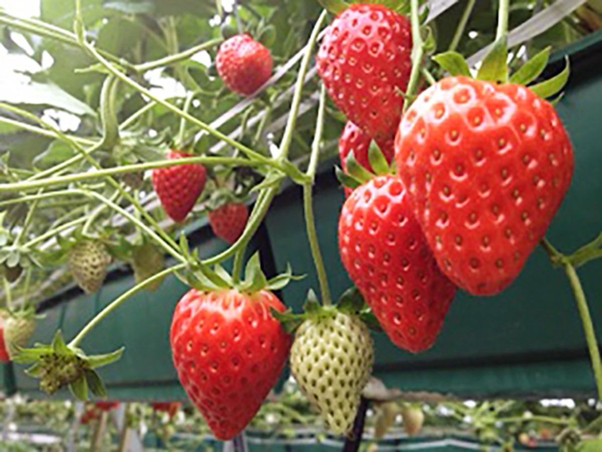 愛媛県ブランドの「紅い雫」や「あまおとめ」をはじめ、愛媛県内最大生産量の「紅ほっぺ」、ビタミンCが豊富な「おいCベリー」など、様々な品種に出合えます。変わり種は、ピンク色にしかならない「桃薫(とうくん)」という、見た目も味も奇抜な希少種。この機会に味わってみてはいかがでしょうか。