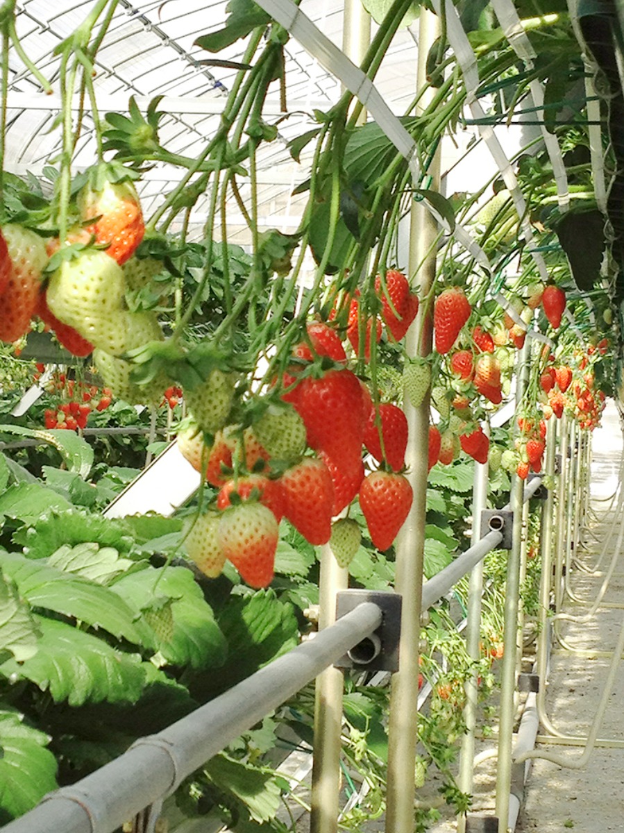 昨シーズンからは新品種「すず」を導入。実が大きく歯ごたえがあり、甘みと酸味のバランスの良い品種です。こちらもぜひ食べてみたい品種ですね。新鮮ないちごを存分に食べ比べて、贅沢な時間を過ごしましょう。